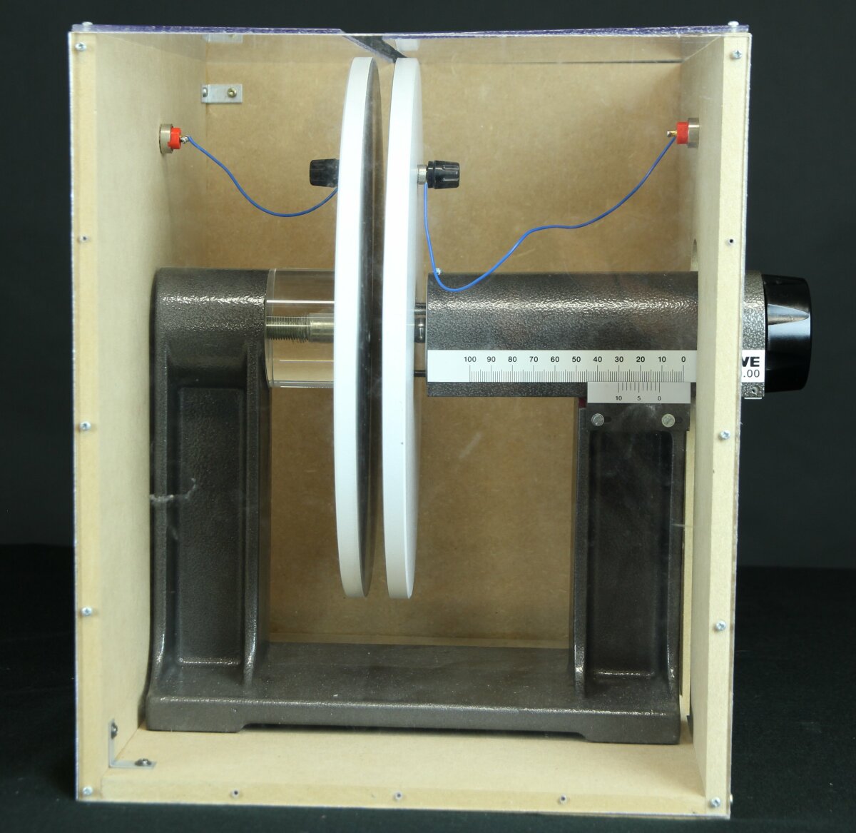 d'un condensateur à plateaux de diamètre 260 mm avec une plaque fixe et une plaque d'écart réglable entre 0 et 70 mm