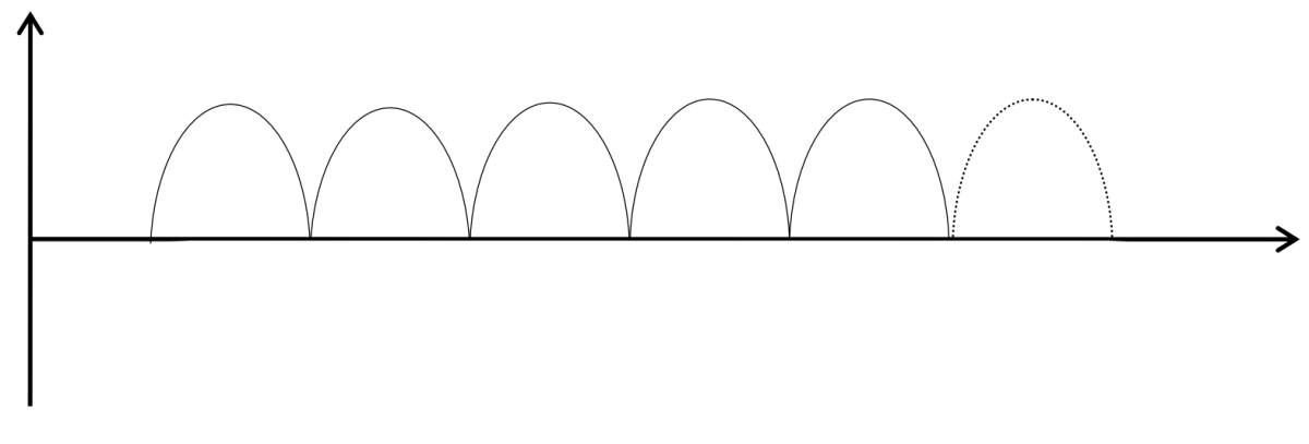 Comme e change de signe en même temps que la valeur de \(sin(\omega\: t)\), les deux effets se compensent : le collecteur joue le rôle d'un dispositif redresseur et la tension a cet aspect :